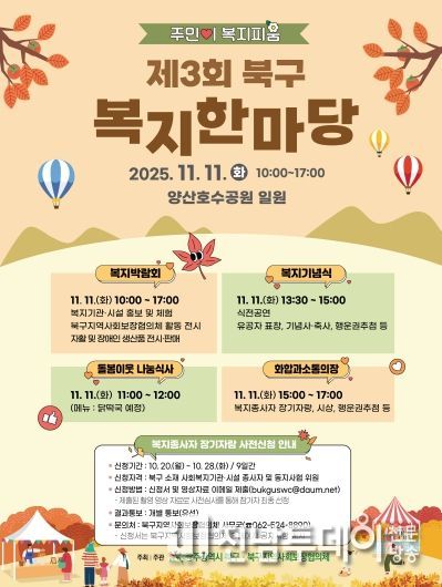 올해로 3회째를 맞는 ‘복지한마당’은 북구 지역사회보장협의체의 주관으로 ▲복지 박람회 ▲돌봄이웃 나눔식사 ▲기념식 ▲화합과 소통의 장 순으로 진행된다.