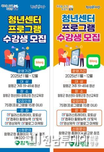 이번 교육은 11월부터 12월까지 운영되며, 함평군에 주소를 둔 만 19세 이상 49세 이하 청년이면 누구나 신청할 수 있다.