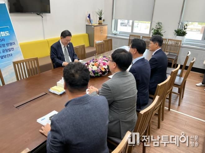 전남투데이 박세훈 기자 | 전남 영광군은 11월 7일 더불어민주당 김병기 원내대표를 만나'서해안철도(새만금∼목포) 건설사업'의 제5차 국가철도망 구축계획 반영을 건의했다.