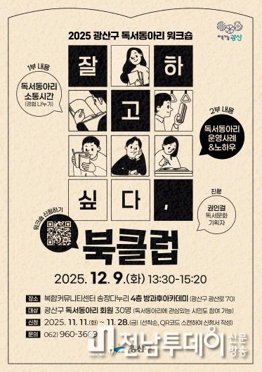 전남투데이 정홍균 기자 | 광주 광산구가 12월 9일 송정다누리센터에서 독서 문화 교류의 장인 독서동아리 워크숍을 개최한다.