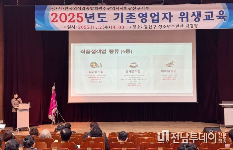 전남투데이 정홍균 기자 | 광주 광산구는 12일 광산구청소년수련관에서 지역 일반음식점 기존영업자를 대상으로 ‘2025년도 기존영업자 집합 위생교육’이 진행됐다고 밝혔다.