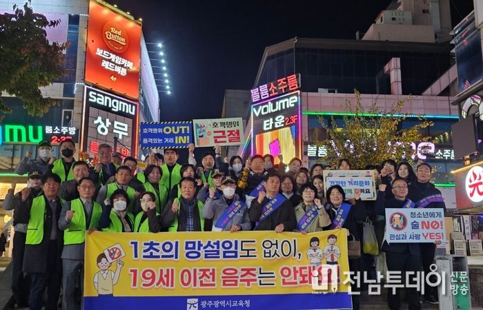 전남투데이 정홍균 기자 | 광주시교육청은 지난 14일 상무지구 일대에서 광주광역시, 광주경찰, 서구, 한국외식업중앙회 광주지회, 광주청소년유해환경감시단 등과 함께 수능 이후 청소년 보호를 위한 현장 캠페인을 전개했다.