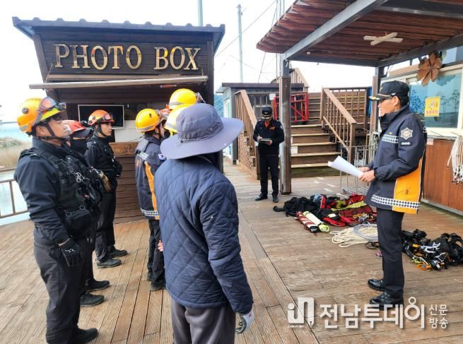전남투데이 박동운 기자 | 강진소방서는 11월 18일 강진군 가우도에 위치한 짚라인 레포츠 시설에서 안전사고 발생에 대비한 민·관 합동 인명구조훈련을 실시했다.