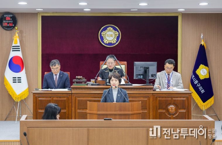 전남투데이 정홍균 기자 | 광주광역시 동구의회 박현정 의원(진보당, 가 선거구)이 본회의 5분 발언을 통해 “동구에서 가장 열악한 계림1동의 주거환경과 심각한 기후취약성 문제에 대해 더 이상 방치돼서는 안 된다”며 구청의 실질적 대책 마련을 촉구했다.