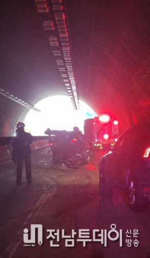 금일 오전 9시 19분경, 장흥군 유치면 용문리 피재터널에서 차대차 교통사고가 발생해 심정지 1명, 경상 1명의 인명피해가 발생했다.