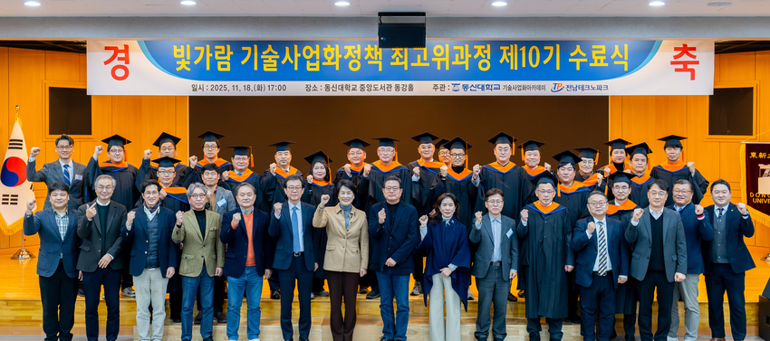 전남투데이 김윤걸 기자 | 동신대학교가 에너지신산업 분야 산학연관 임직원들의 역량 강화와 네트워크 조성을 위해 개설한 빛가람기술사업화정책 최고위과정이 올해로 10주년을 맞아 10번째 수료식을 가졌다.