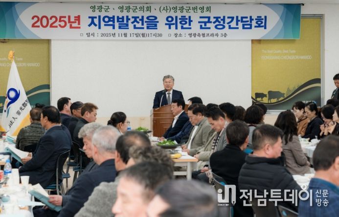전남투데이 박세훈 기자 | (사)영광군번영회(회장 김용식)는 11월 17일 번영회 임원 및 집행부 100여 명이 참석한 가운데 영광군 및 영광군의회와의 간담회를 개최하고 지역 발전 방향과 현안 사항에 대해 심도 있게 논의하는 자리를 마련했다.