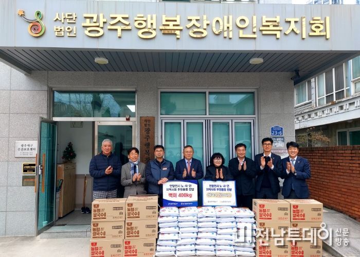 이번 행사에는 광주시의회 강수훈 의원이 참석했으며, 양 기관 노사는 ‘광주 서구행복장애인복지회’를 방문해 쌀 400kg과 쌀국수 500개를 전하며 주변 이웃들이 보다 따뜻한 겨울을 보낼 수 있도록 응원의 마음을 보냈다.