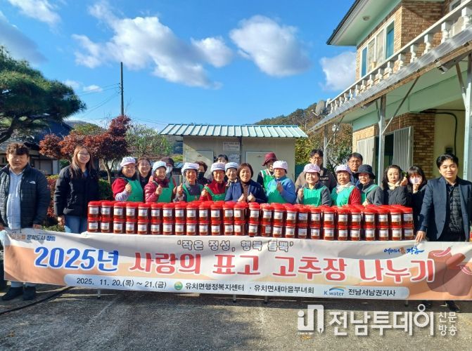전남투데이 김용희 기자 | 장흥군 유치면은 지난 20일과 21일 새마을부녀회, 한국수자원공사 전남서남권지사 후원으로 ‘유치면 사랑의 표고 고추장 나누기 행사’를 가졌다고 전했다.