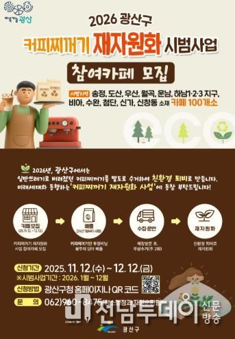 참여를 희망하는 커피전문점은 12월 12일까지 광산구 누리집이나 정보무늬(QR 코드)를 통해 신청하면 된다.