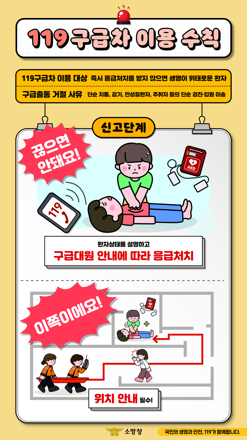 특히 소방서는 “119구급차는 위급한 환자의 생명을 살리기 위한 수단인 만큼, 응급환자가 아닌 경우 일반 교통수단을 이용하는 것이 원칙이자 책임”이라고 덧붙였다.