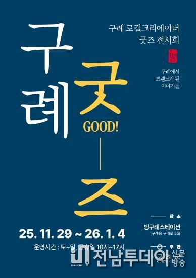 전남투데이 강길수 기자 | 전남 구례군은 지역의 다양한 자원을 활용해 제작된 로컬크리에이터 제품을 선보이는 ‘구례군 로컬크리에이터 팝업 전시회’를 오는 2025년 11월 29일부터 2026년 1월 4일까지 빙구례스테이션에서 개최한다고 밝혔다.