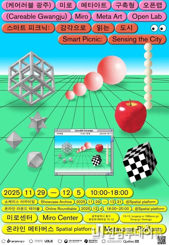 전남투데이 정홍균 기자 | 광주 동구는 오는 29일부터 12월 5일까지 미로센터 일원에서 ‘(케어러블 광주) 미로 메타아트 구축형 오픈랩’ 사업의 온·오프라인 쇼케이스 ‘스마트 피크닉:감각으로 읽는 도시’를 개최한다고 밝혔다.
