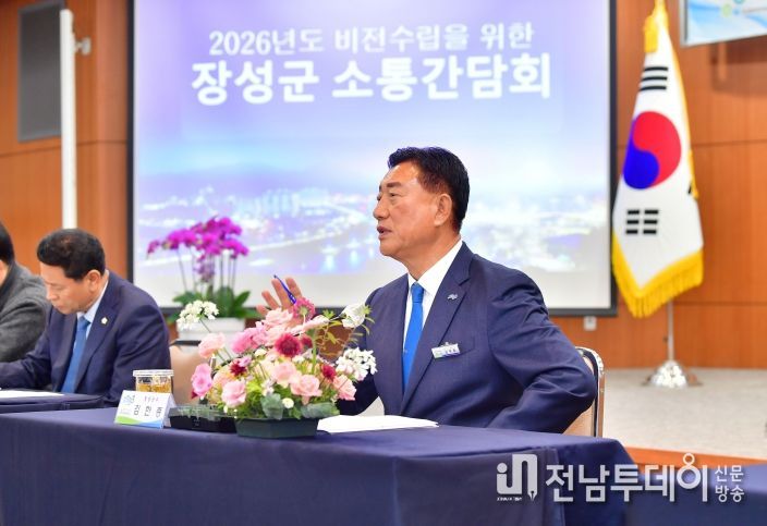 전남투데이 이현승 기자 | 장성군이 24일 군청 아카데미홀에서 ‘2026년 비전 수립을 위한 소통간담회’를 열었다. 군민, 사회단체 관계자, 언론인과 도·군의원, 공무원 등 150여 명이 참석해 주요 군정 추진 사항에 대해 의견을 나눴다.