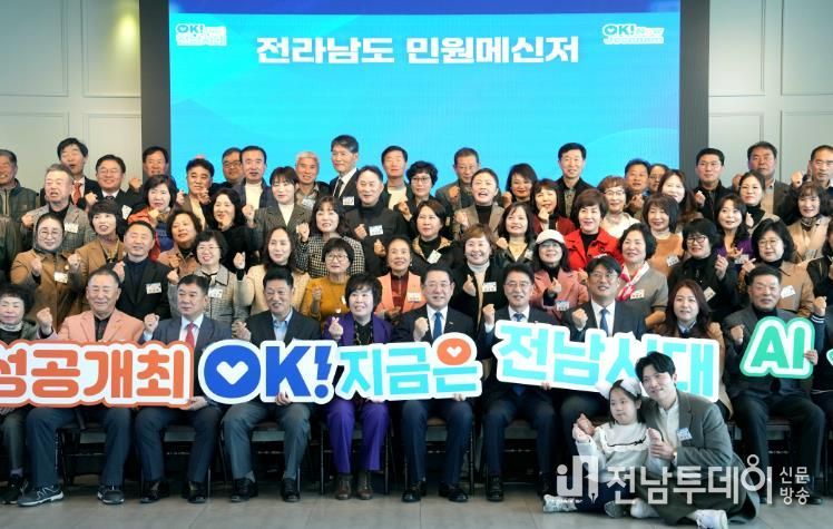 전남투데이 김용희 기자 | 전라남도는 26일 순천 아모르웨딩컨벤션에서 2025년 전남도 민원메신저 성과보고회를 열어 올해 민원메신저의 역대 최고 실적 달성 성과를 공유하고, 현장 활동 노고를 격려했다.