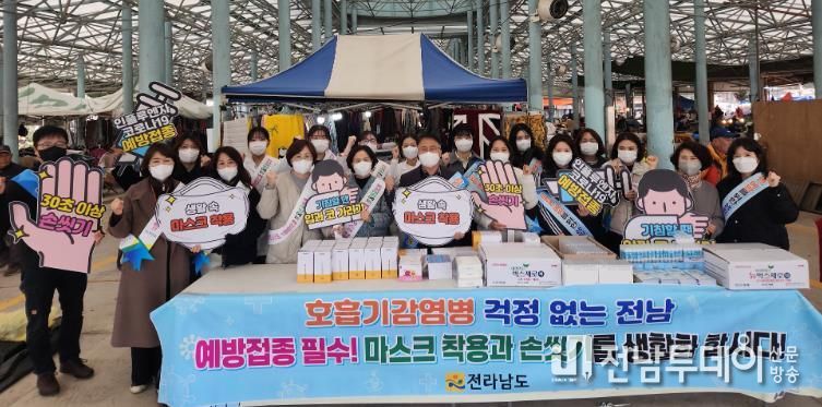 이에 전남도와 무안군보건소 등 50여 명은 26일 일로시장 일원에서 시장 방문객을 대상으로 예방접종 독려와 마스크 등 예방 물품을 나눠주며 독감 확산 방지 캠페인을 벌였다.