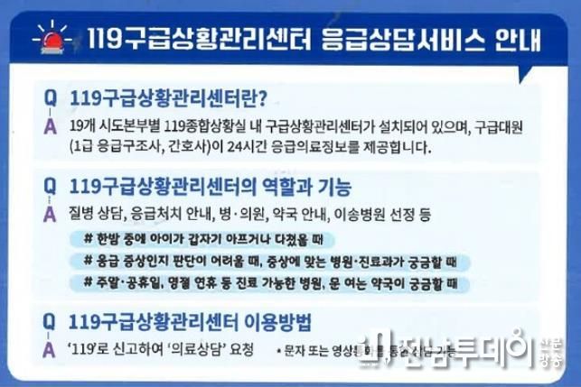 전남투데이 김용희 기자 | 목포소방서는 신속·정확한 응급의료서비스를 제공받을수 있는 119구급상황관리센터 홍보에 나섰다.