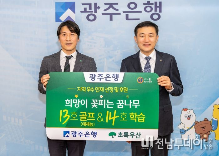 전남투데이 김경민 기자 | 광주은행은 지난 25일 본점에서 고병일 광주은행장, 변정근 초록우산어린이재단 광주지역본부장 등 관계자가 참석한 가운데 ‘희망이 꽃피는 꿈나무’ 13호·14호 선정식을 개최했다고 밝혔다.