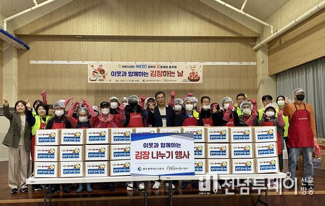 전남투데이 김경민 기자 | 광주도시공사(사장 김승남)는 지난 25일 광주김치타운에서 광주광역시 종합주거복지센터와 함께 공공임대주택 이주 어르신의 따뜻한 겨울나기를 지원하는 ‘사랑의 김장 담그기’ 행사를 개최했다고 밝혔다.