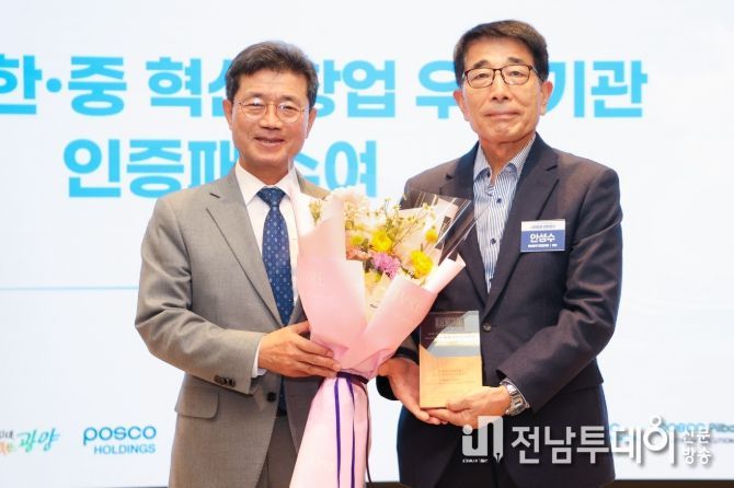 전남투데이 조평훈 기자 | 광양시는 지난 11월 27일 ‘체인지업그라운드 광양’ 개관과 연계해 열린 ‘제2회 이차전지·수소 스타트업 컨퍼런스’에서 해외 자매도시인 중국 선전시로부터 받은 ‘2025 한·중 혁신 창업 우호기관’ 인증패를 광양벤처밸리기업협의회에 공식 전달했다고 밝혔다.