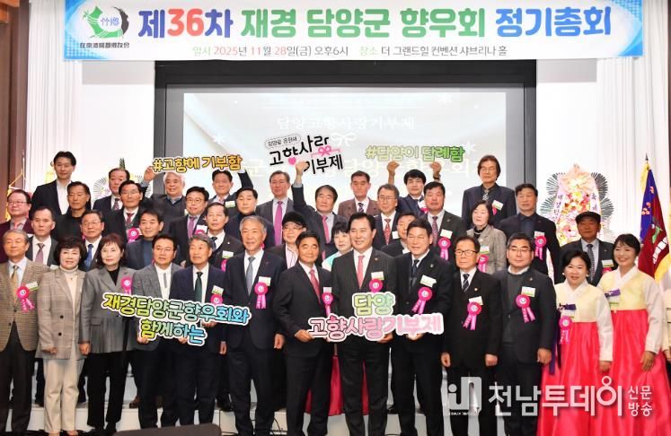 전남투데이 김길룡 기자 | 서울에 거주하는 담양 향우들이 한자리에 모여 고향을 향한 마음과 한 해를 돌아보는 제36차 정기총회가 지난달 28일 서울 더그랜드힐컨벤션에서 개최됐다.