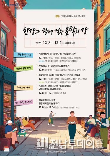 문학강연은 강지희 평론가가 강사로 나서 한강 작가의 『소년이 온다』, 『작별하지 않는다』 등 시대의 아픈 역사와 인간의 존엄을 다룬 작품을 중심으로 작가의 서사와 문학적 메시지를 깊이 있게 탐구한다.