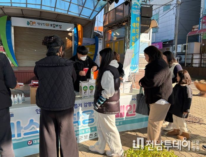 군은 30일 장흥 토요시장 일원에서 시장 방문객을 대상으로 예방접종 독려, 마스크 등 예방 물품 배부, 감염병 예방수칙 홍보 등을 실시하며 마스크 착용 캠페인을 진행했다.
