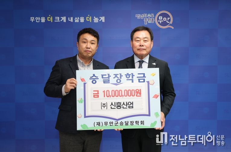 전남투데이 김길룡 기자 | 전남 무안군은 지난 1일 지역인재 육성을 위해 ㈜신흥산업이 장학금 1천만 원을, 청솔수산 윤낙진 대표가 장학금 1백만 원을 각각 (재)무안군승달장학회에 기탁했다고 밝혔다.