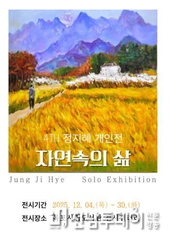 전남투데이 김용희 기자 | 목포시립도서관 전시갤러리는 12월 4일부터 30일까지 정지혜 작가의 개인전 ‘자연 속의 삶’을 개최한다.