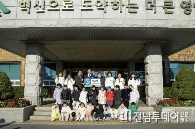 영암읍교회 어린이집 원생 20명이, 3일 영암군청을 찾아 영암군미래교육재단에 인재육성기금 100만원을 기부했다.