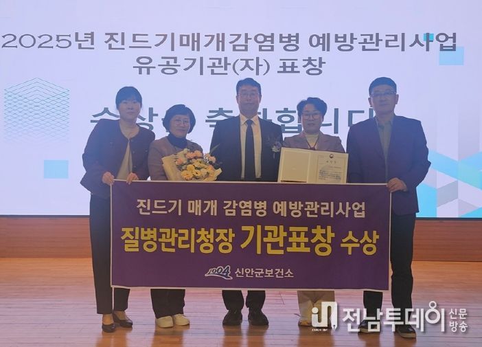 전남투데이 김길룡 기자 | 신안군은 12월 5일 질병관리청이 주관한 ‘2025년 진드기 매개 감염병 예방 관리 사업 평가 대회’에서 우수 지자체로 선정되어 질병관리청장 기관 표창을 수상했다고 밝혔다.