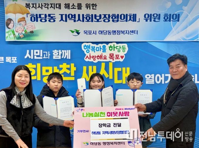 전남투데이 김용희 기자 | 하당동 지역사회보장협의체(위원장 서종일)는 지난 4일 하당동 관내 학생 3명을 장학생으로 선정하고 장학증서와 장학금을 전달했다.
