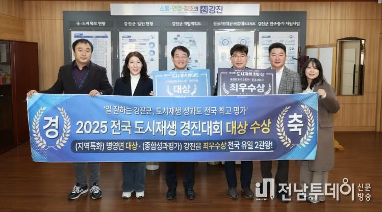 전남투데이 박동운 기자 | 강진군이 국토교통부가 개최한 ‘2025년 제10회 도시재생 한마당 경진대회’에서 두 개 부문을 동시에 수상하며, ‘일 잘하는 지자체’로서의 행정역량과 도시재생 성과를 다시 한 번 공식적으로 인정받았다.