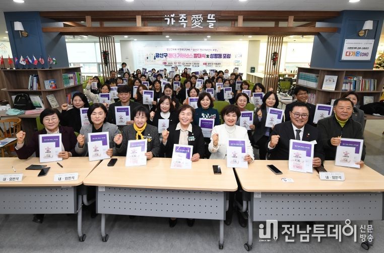 전남투데이 김경민 기자 | 광산구의회 의원연구단체 ‘광산구 젠더거버넌스 포럼(대표의원 조영임)’이 지난 12일 광산구가족센터에서 ‘광산구 젠더 거버넌스 발대식 및 성평등 포럼’을 개최했다. 이번 행사는 성평등 정책을 의회·행정·시민사회·전문가·주민이 함께 기획하고 실행하는 협력적 거버넌스 체계로 전환하기 위한 출발점으로 마련됐다.