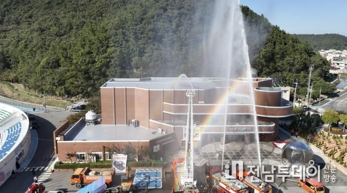 군은 지난 10월 29일 다중 밀집 시설인 완도생활문화센터의 화재 및 땅 꺼짐 발생 상황을 가정해 완도군청 재난안전상황실과 연계한 통합 훈련을 실시했다.