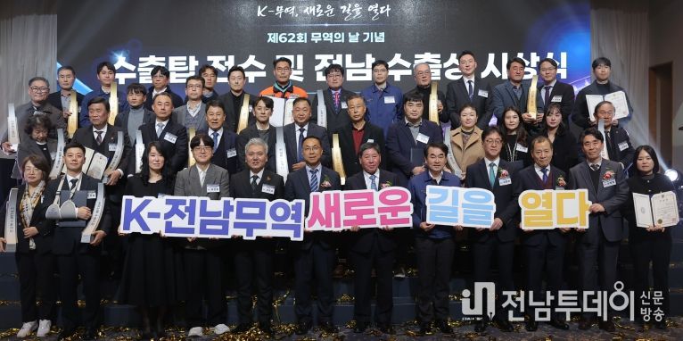 전남투데이 김용희 기자 | 전라남도는 제62회 무역의 날을 기념해 수출탑 전수식과 전남 수출상 시상식을 지난 17일 호텔현대 바이 라한 목포에서 열어 전남 수출 성과를 공유하고 지속적인 수출 확대 방안을 모색했다.