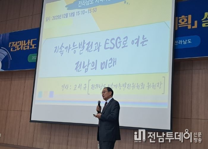 첫번째 강연자로 나선 고석규 전남도 지속가능발전위원장은 ‘지속가능발전과 ESG로 여는 전남의 미래’를 주제로 지속가능발전의 의미와 함께 전남도가 앞으로 나아가야 할 방향을 제시했다. 이어‘전라남도 지속가능발전 기본전략 및 추진계획’의 주요 내용과 추진체계에 대한 구체적 이해를 높이기 위한 전략 수립 배경, 향후 5년과 20년을 내다보는 중·장기 추진 과제 등을 소개했다.