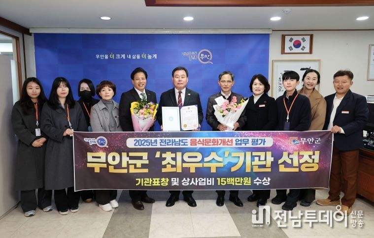 전남투데이 김길룡 기자 | 무안군은 전라남도 주관 2025년 음식문화개선 사업 평가에서 ‘최우수’ 기관으로 선정되어 기관 표창과 함께 상사업비 1천5백만 원을 확보했다.