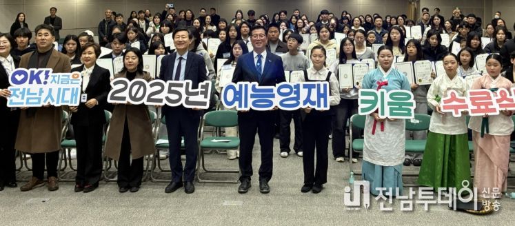 전남투데이 김용희 기자 | 전라남도는 도청 왕인실에서 2025년 예능영재 키움 수료식을 지난 22일 열어 1년간의 교육과정을 성실히 이수한 예능영재 학생들을 격려했다.