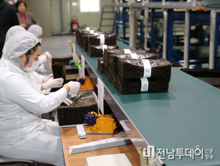 신안 소재 수출업체 ㈜신안천사김은 최근 미국 코스트코의 조미김 주문량 증가에 맞춰 적기 생산과 납품을 이어가고 있다.