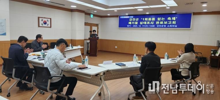 전남투데이 박동운 기자 | 강진군이 지난 17일 ‘강진군 축제 폐기물 실태조사’ 완료보고회를 통해 지역축제에서 다회용기를 사용한 결과, 축제 폐기물과 1회용품 발생량이 크게 줄고 온실가스 배출 저감 효과도 뚜렷하게 나타났다고 밝혔다.