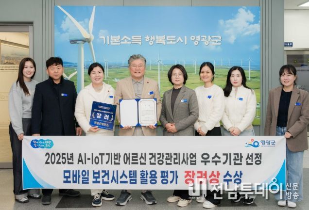 전남투데이 박세훈 기자 | 영광군은 12월 18일 한국사회보장정보원 주관으로 서울PJ호텔에서 열린 2025년 AI-IoT기반 어르신 건강관리사업 모바일 보건소 시스템 활용 평가 성과대회에서 장려상을 수상하며 2년 연속 우수기관으로 선정됐다.