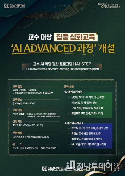 한편, 전남대학교는 2026년 3월 보건의료계열 AI ADVANCED 과정을 추가로 운영할 예정이며, 인문사회계열과 자연이공계열 과정도 방학 기간을 활용해 정기적으로 운영할 계획이다.
