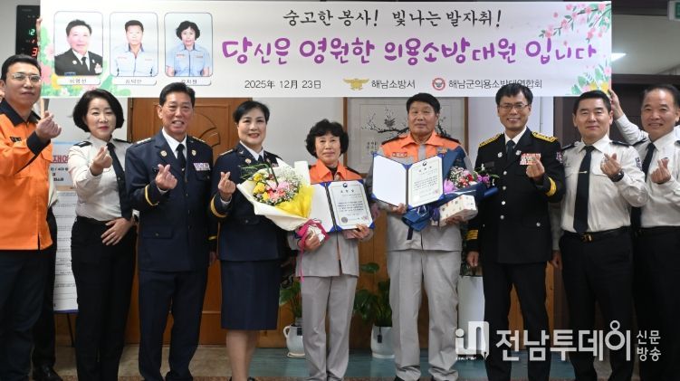 이날 퇴임식은 오랜 기간 지역사회 안전을 위해 헌신해온 해남의용소방대 이영선 ㆍ김덕만ㆍ김지원 대원의 노고에 감사를 전하고, 명예로운 퇴임을 축하하기 위해 마련됐다.