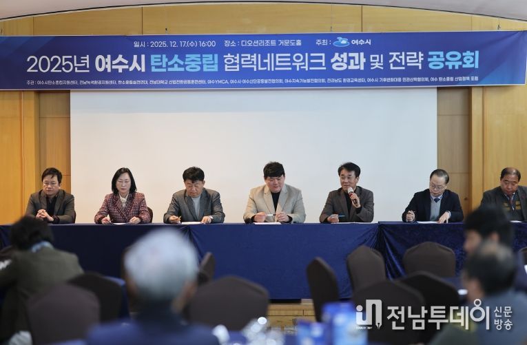 공유회에서는 여수시 탄소중립 협력네트워크 구성원 간 협력 및 공동사업 MOU 체결이 이뤄졌다. 또한 여수시의회 기후변화 대응 탄소중립연구회 소속 의원들에게 감사패 전달과 참여기관별 2025년 사업 추진 현황 및 성과가 공유됐다. 이어 여수시 탄소중립 협력네트워크 활성화 방안을 논의하는 토론도 진행됐다.