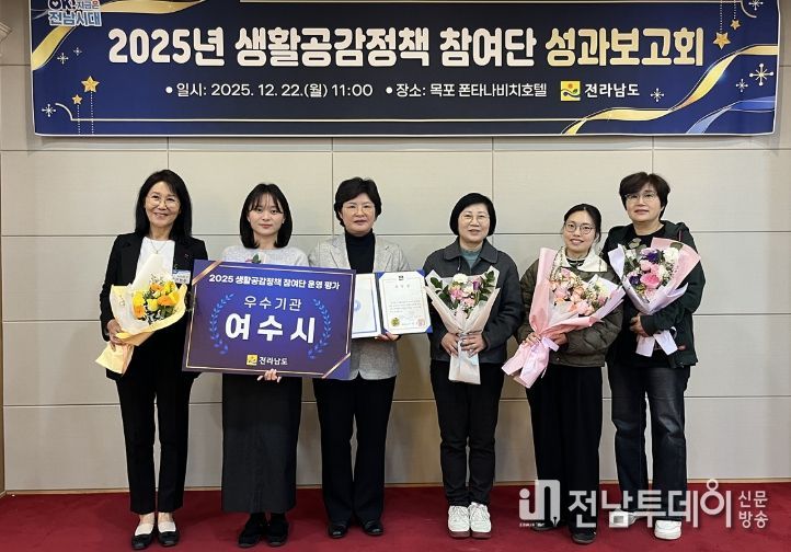 전남투데이 조평훈 기자 | 여수시가 2025년 생활공감정책 참여단 평가에서 전남도 시·군 가운데 1위를 차지해 도지사 기관 표창을 수상했다.