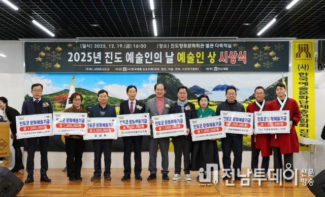 지역 예술인과 예술단체는 지난 19일에 열린 ‘2025년 진도 예술인의 날’ 행사에서 한 해를 마무리하며 문화진흥기금을 조성하는 데 뜻을 모았다.