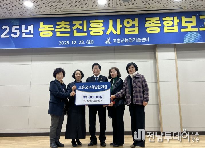 전남투데이 조평훈 기자 | 고흥군이 육성하고 있는 고흥군 생활개선회(회장 박경숙)는 지난 23일 고흥군 농업기술센터를 방문해 지역 인재 육성을 위한 교육발전기금 100만 원을 기부하며 따뜻한 나눔을 실천했다.