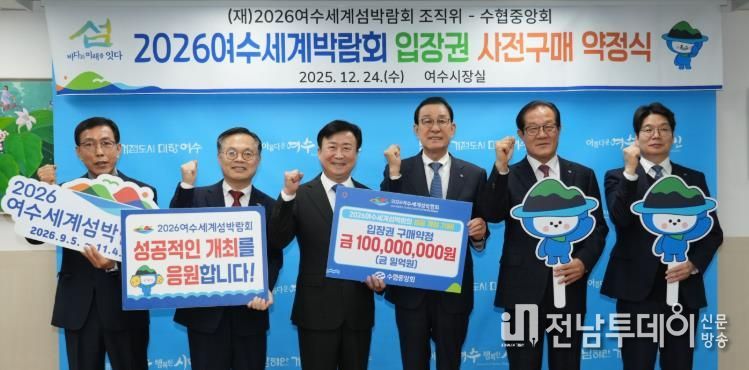 전남투데이 조평훈 기자 | (재)2026여수세계섬박람회조직위원회는 지난 24일, 수협중앙회와 섬박람회 성공개최를 위한 1억 원 규모의 입장권 구매약정을 체결했다고 밝혔다.