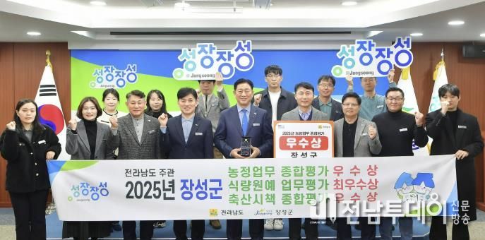 전남투데이 이현승 기자 | 장성군이 최근 전라남도 농정업무 종합평가에서 종합 우수상을 수상했다. 식량·원예분야 최우수상, 농식품유통 우수상, 축산분야 우수상도 받았다.